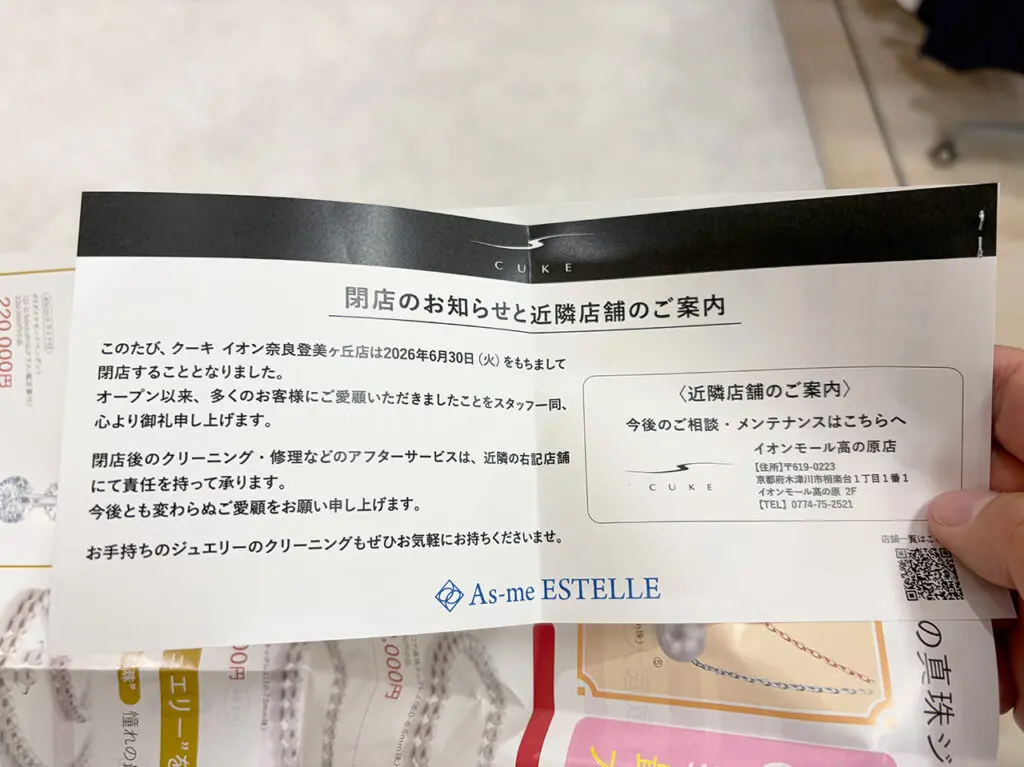 入り口にて閉店のお知らせが掲示されていました。公式HPでも告知されています。