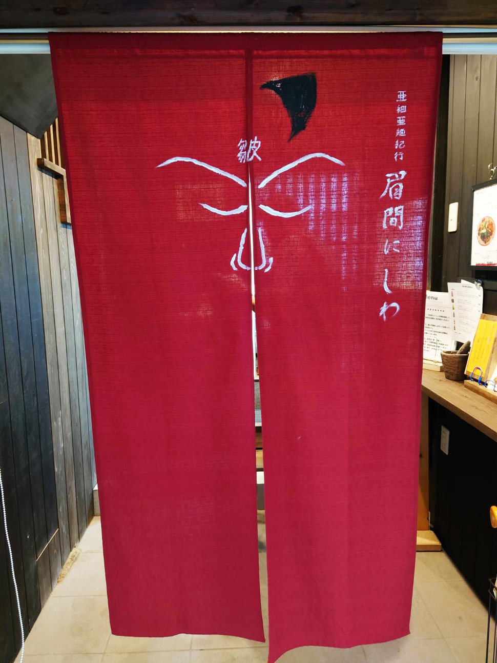 眉間に皺マークの赤い暖簾をくぐります。