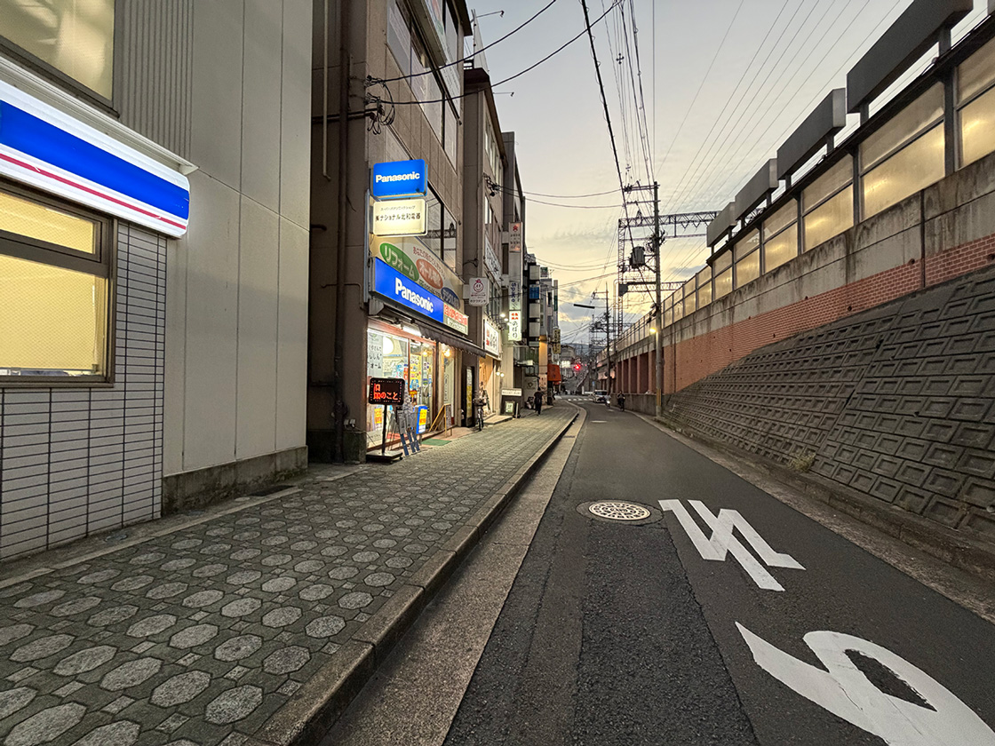ローソンがある線路沿いを少し歩いたところ。