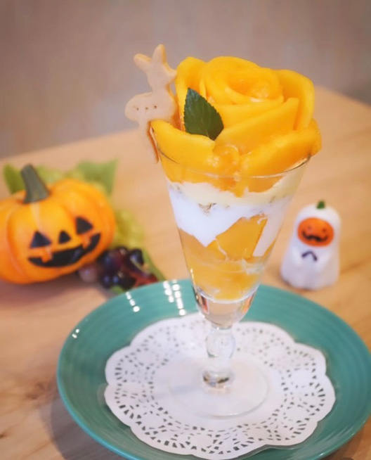 シャインマスカットパフェはただいまハロウィンバージョンに!