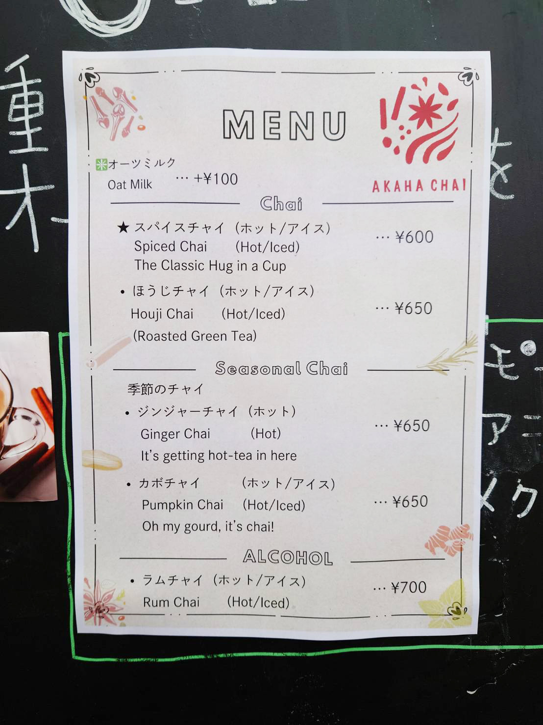 そちらの場所に、チャイ専門店「Akaha Chai(アカハ チャイ)」がオープンするそうです。