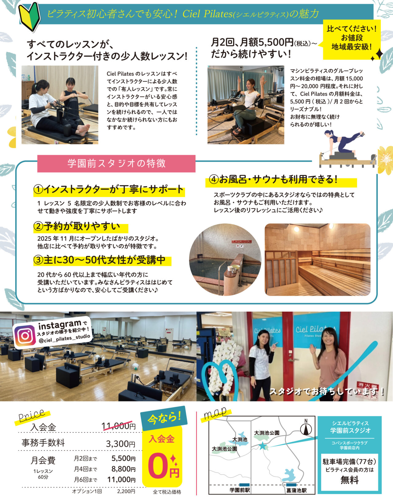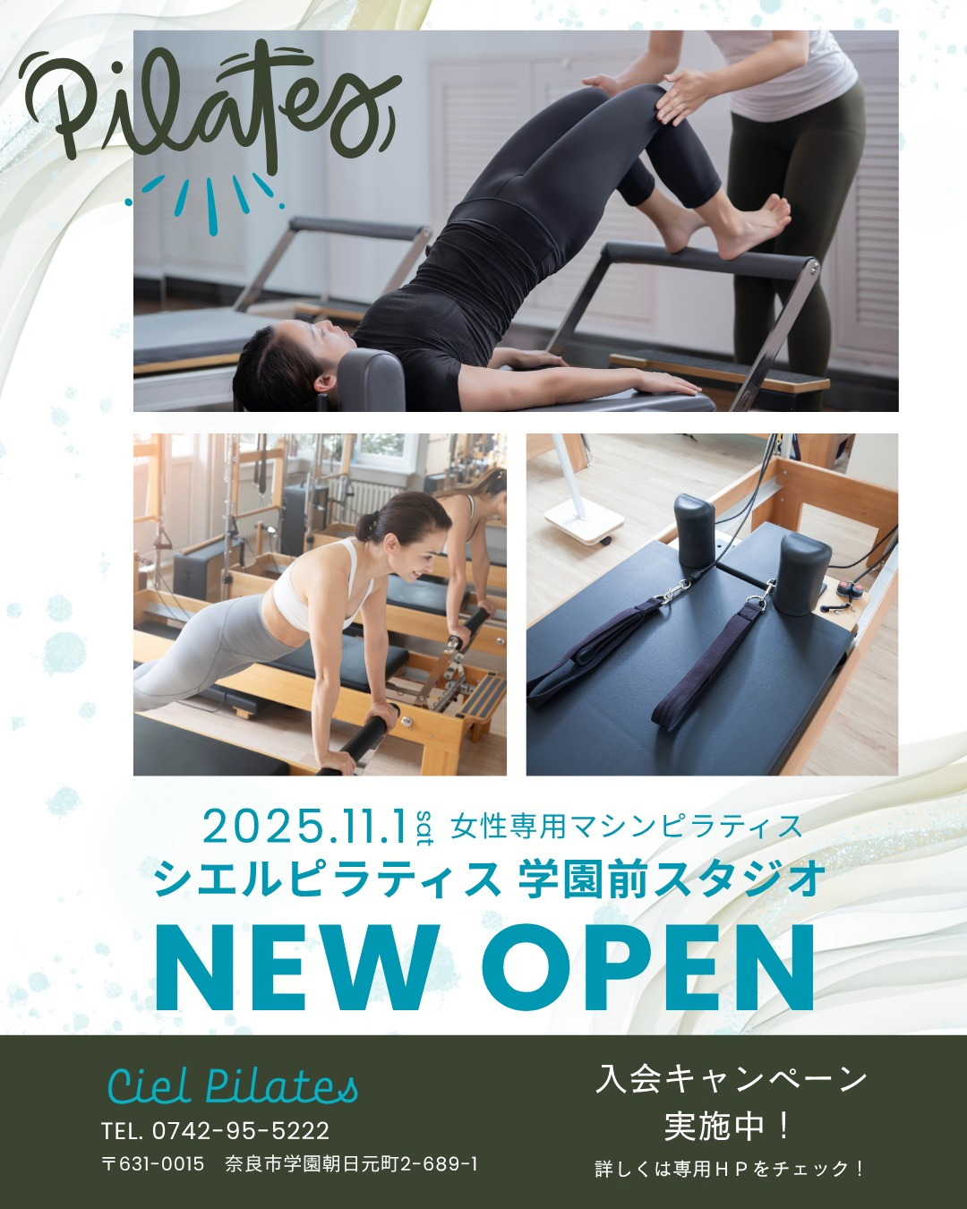 こちらのコパンスポーツクラブ学園前1Fの店内に、2025年11月1日(土)より、女性専用マシンピラティス「シエルピラティス 学園前スタジオ」がオープンしたそうです。
