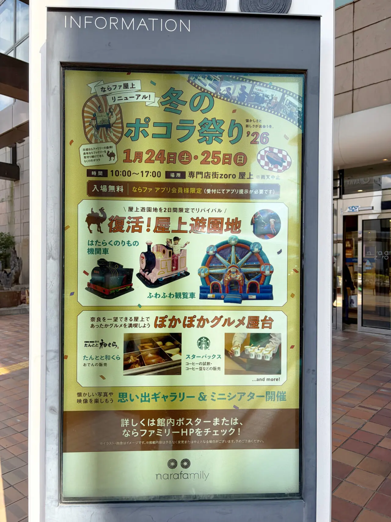 【奈良市】遊園地や屋台も! ならファの屋上が、リニューアル!冬のポコラ祭りが1月24・25日に開催されますよ!