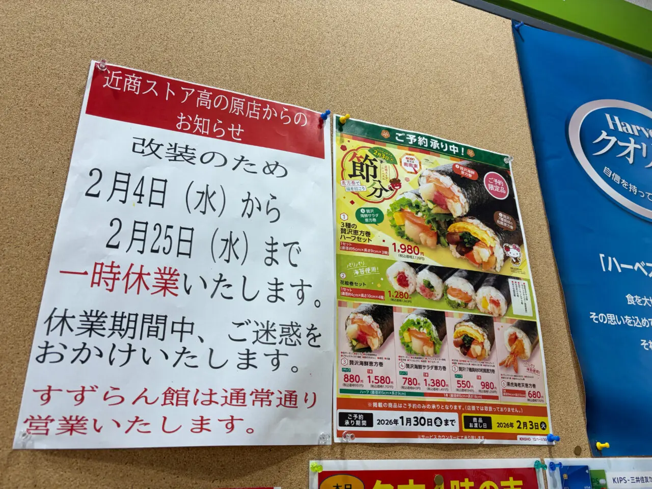 サンタウンプラザすずらん館1階にある、「近商ストア高の原店」が、2026年2月4日(水)より一時休業するという情報が、近商アプリ内にて掲載されました。