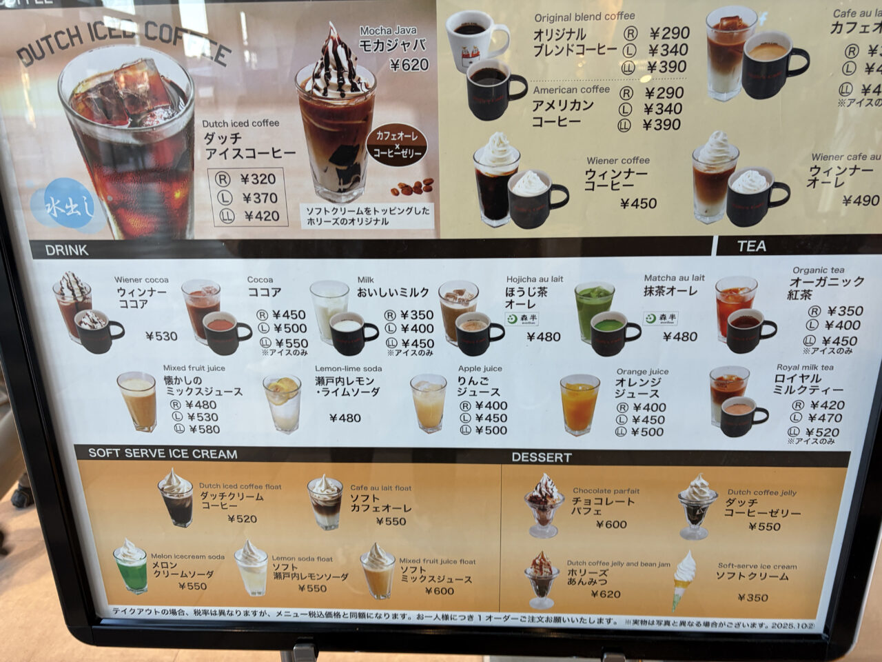 ソフトクリームやコーヒーゼリー、チョコレートパフェ、ホリーズあんみつといった甘味も楽しめます。