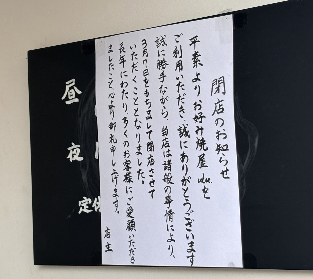 【奈良市】花芝商店街にある、お好み焼き店が閉店したそうです。