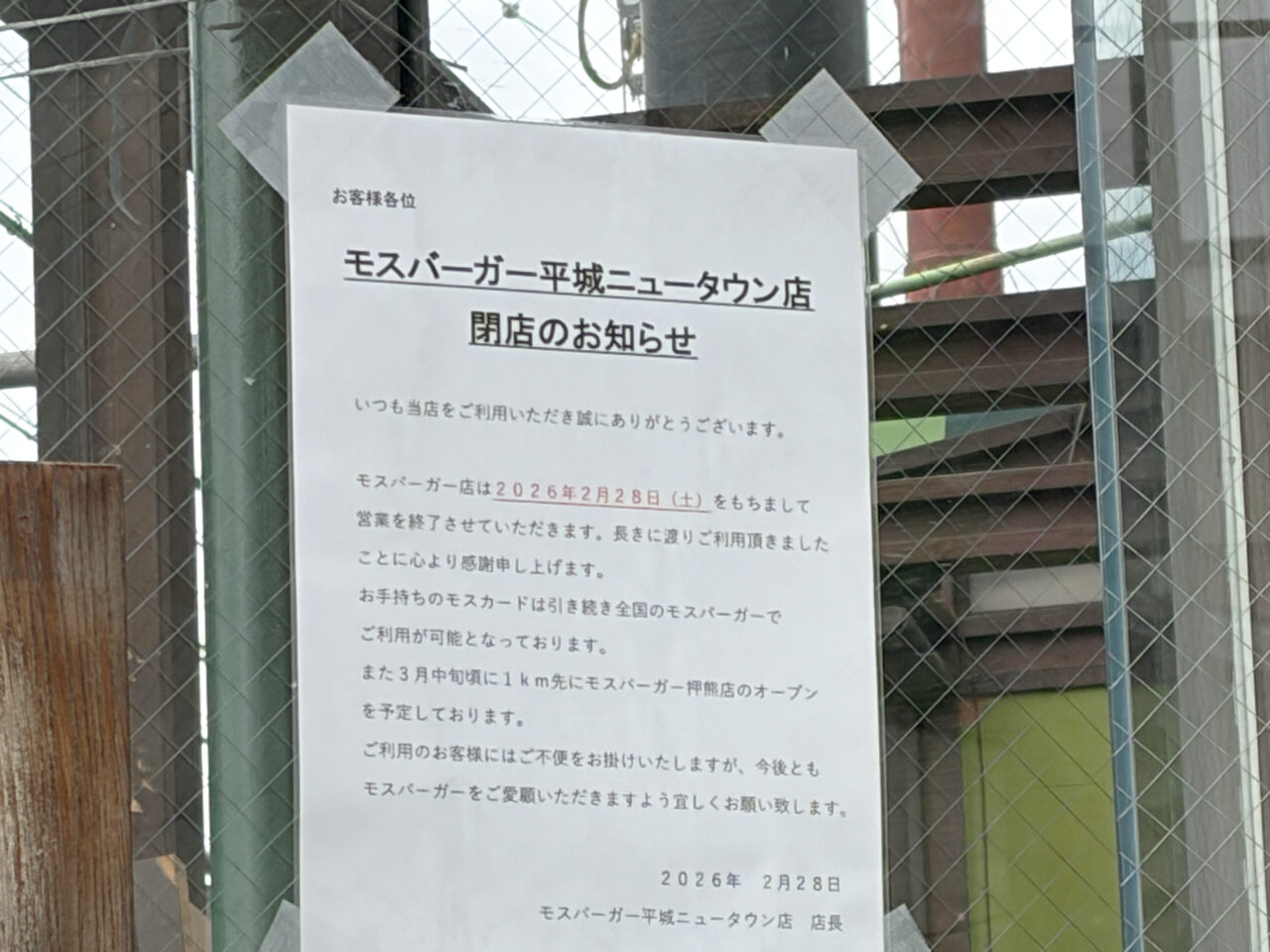 モスバーガー店は2026年2月28日(土)をもちまして