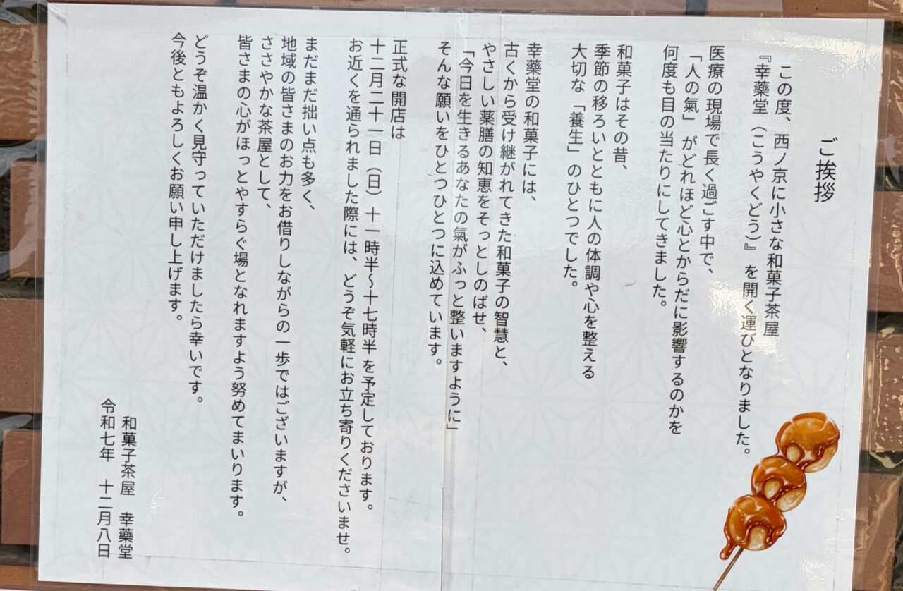 こちらに2025年12月21日より、「幸藥堂 Koyakudo 和菓子茶屋」がオープンしています。