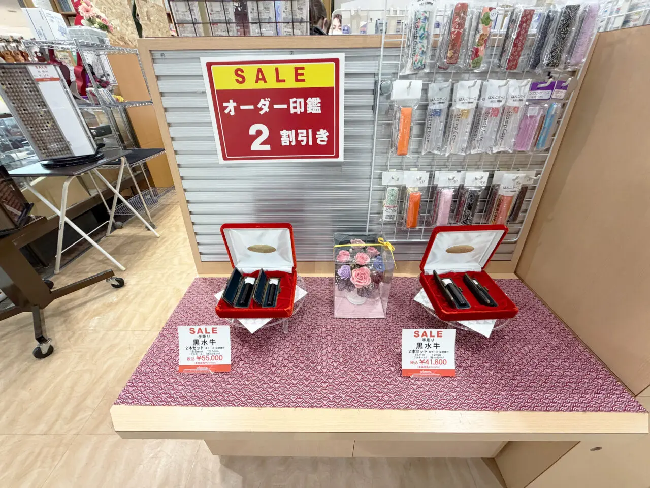 現在は閉店に伴い、オーダー印鑑の割引セールも実施されており、店内の商品が一部お得に購入できる状況となっています。