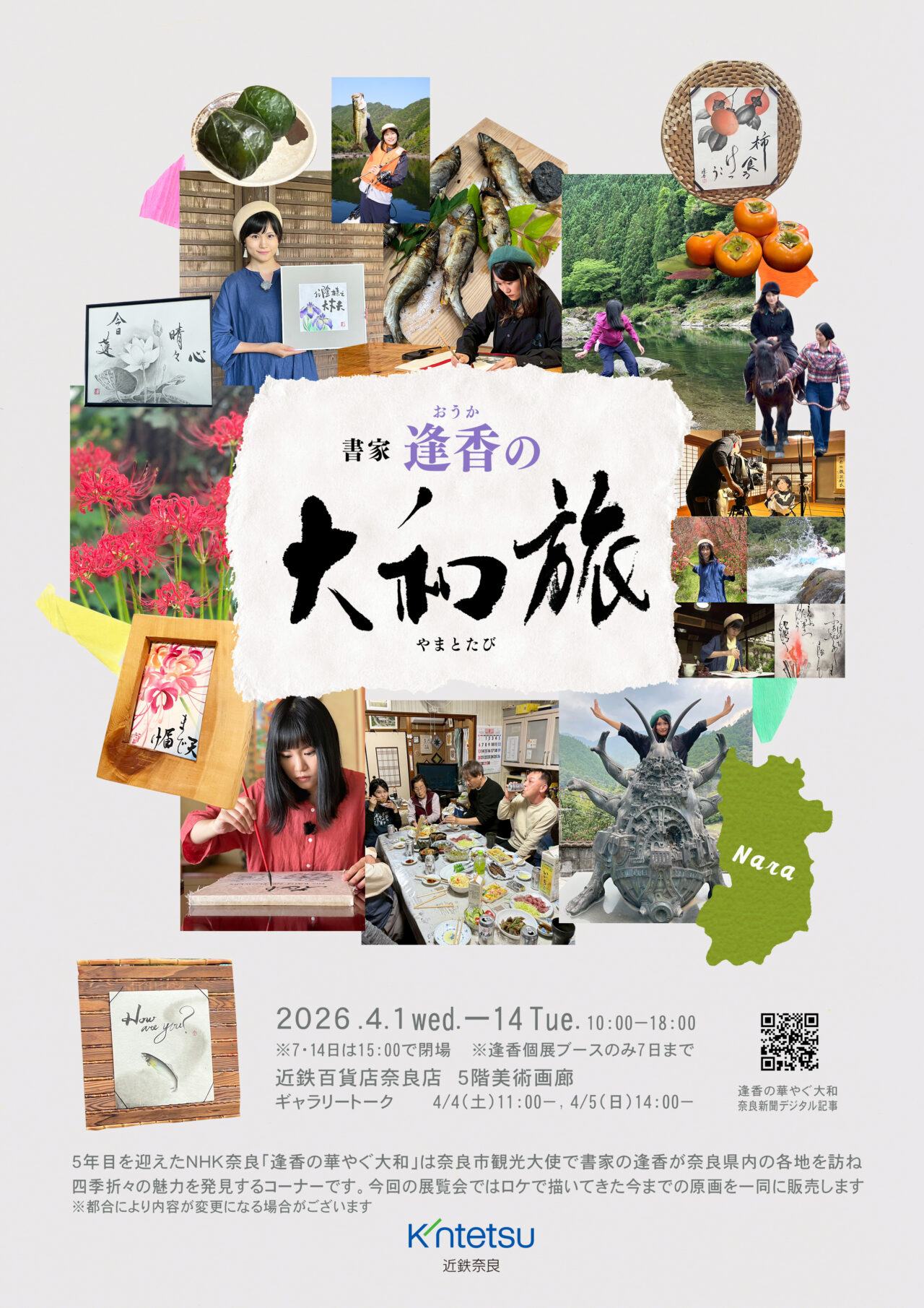 【奈良市】NHKでも話題の書家・逢香さんの作品展「書家 逢香の大和旅」が近鉄百貨店奈良店で開催中。原画が一堂に!(4/1〜14)