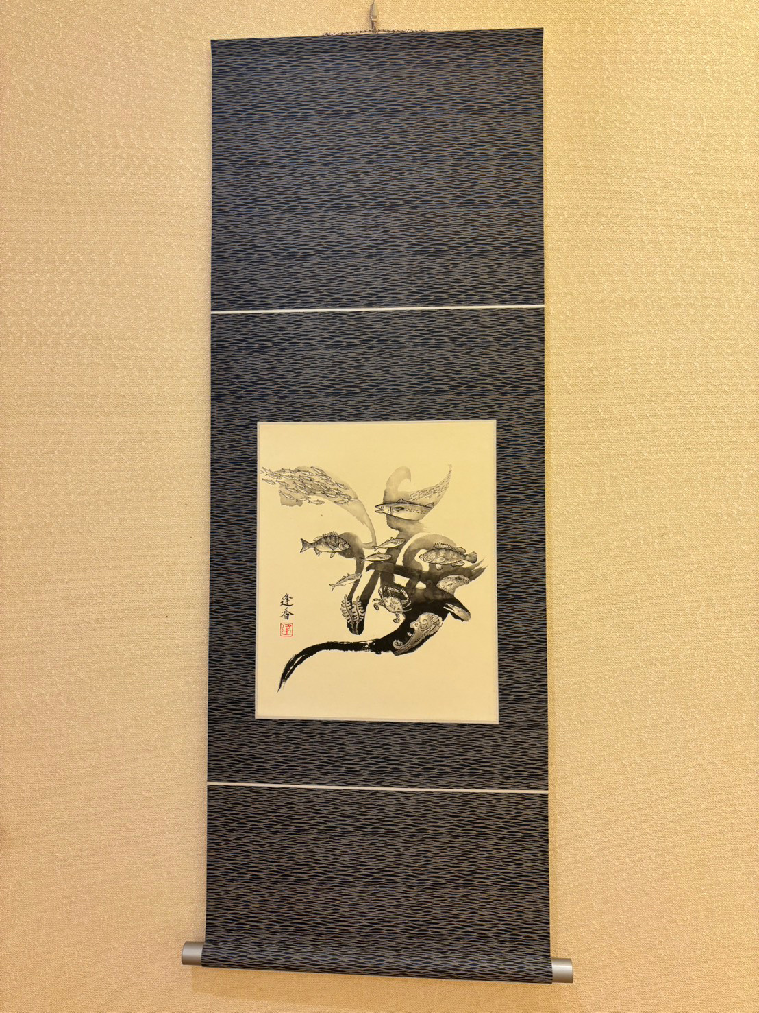 実際の展示では、掛け軸の大作から額装作品まで幅広く並び、墨の濃淡や勢いを間近で感じることができます。