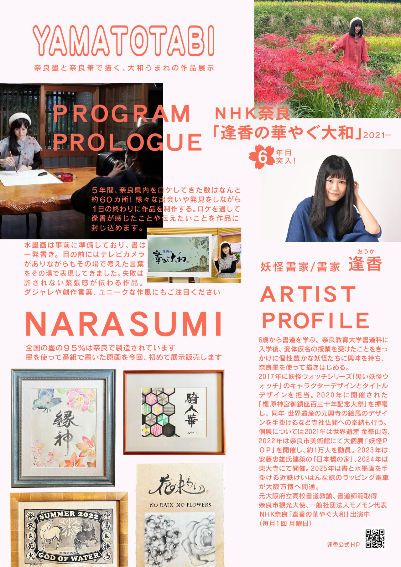 近鉄百貨店奈良店の5階・美術画廊で、書家・逢香さんの作品展「書家 逢香の大和旅」が開催されています。